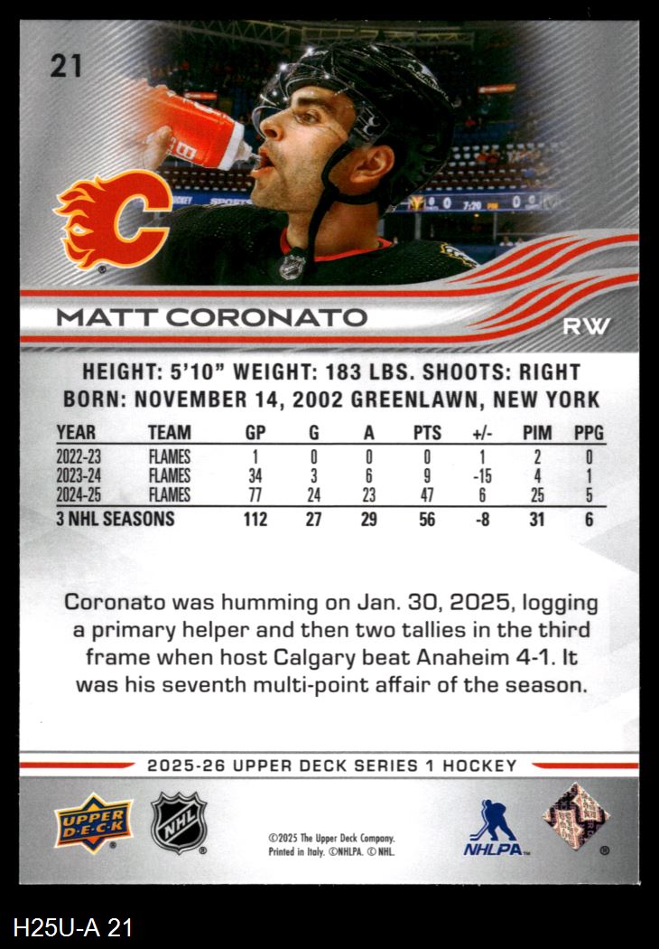 2025 Upper Deck #21 Matt Coronato 8 - NM/MT