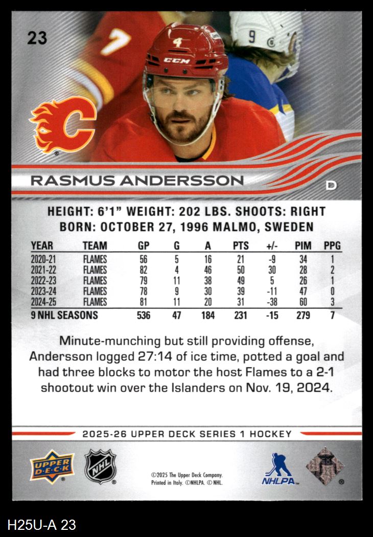 2025 Upper Deck #23 Rasmus Andersson 8 - NM/MT