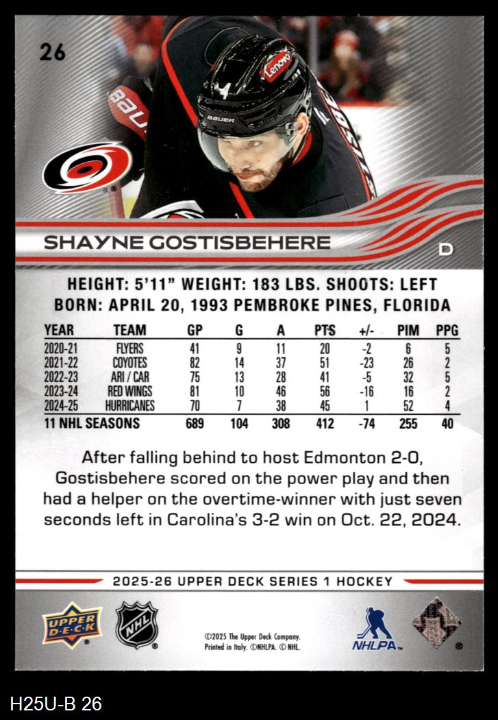 2025 Upper Deck #26 Shayne Gostisbehere 8 - NM/MT