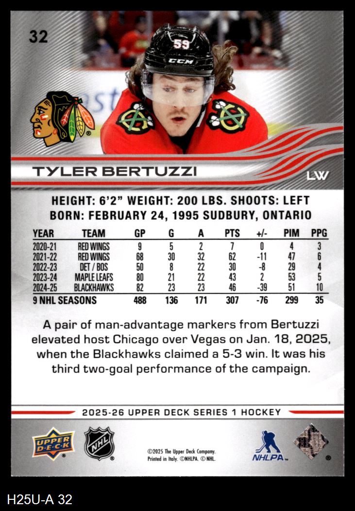 2025 Upper Deck #32 Tyler Bertuzzi 8 - NM/MT
