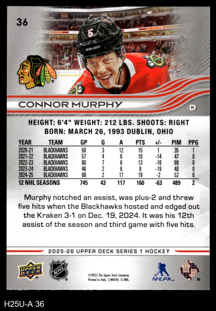 2025 Upper Deck #36 Connor Murphy 8 - NM/MT