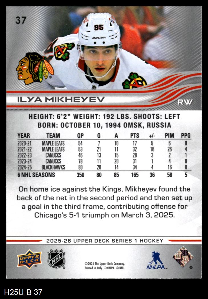 2025 Upper Deck #37 Ilya Mikheyev 8 - NM/MT
