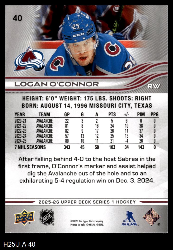 2025 Upper Deck #40 Logan O'Connor 8 - NM/MT