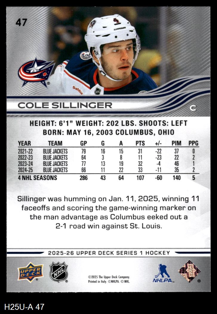 2025 Upper Deck #47 Cole Sillinger 8 - NM/MT
