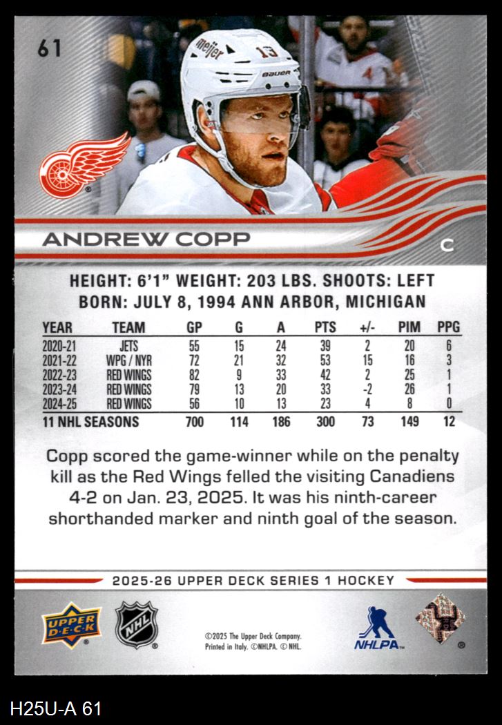 2025 Upper Deck #61 Andrew Copp 8 - NM/MT