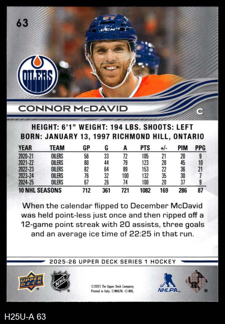 2025 Upper Deck #63 Connor McDavid 8 - NM/MT