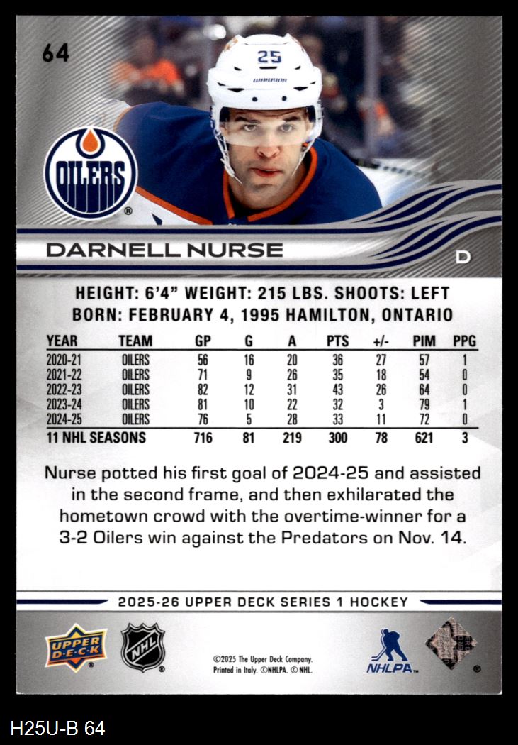 2025 Upper Deck #64 Darnell Nurse 8 - NM/MT