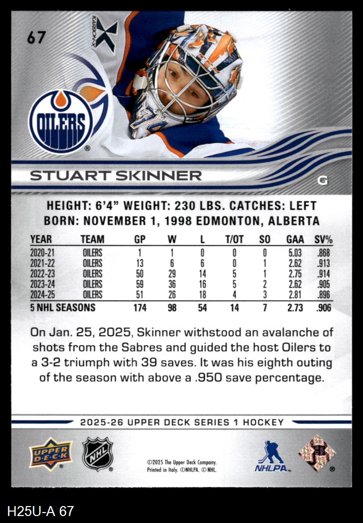 2025 Upper Deck #67 Stuart Skinner 8 - NM/MT