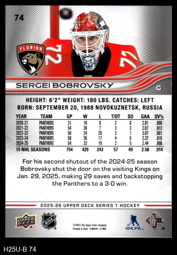 2025 Upper Deck #74 Sergei Bobrovsky 8 - NM/MT