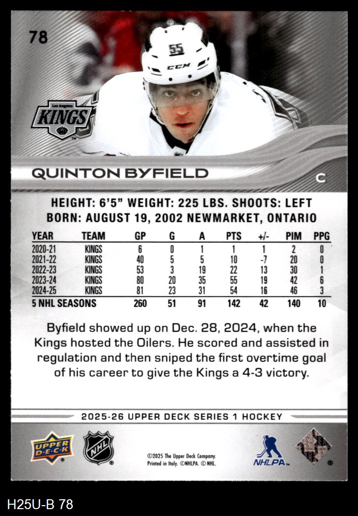 2025 Upper Deck #78 Quinton Byfield 8 - NM/MT