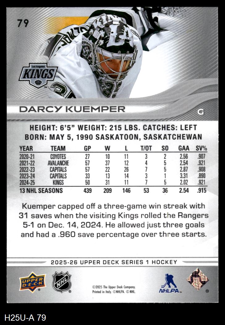 2025 Upper Deck #79 Darcy Kuemper 8 - NM/MT