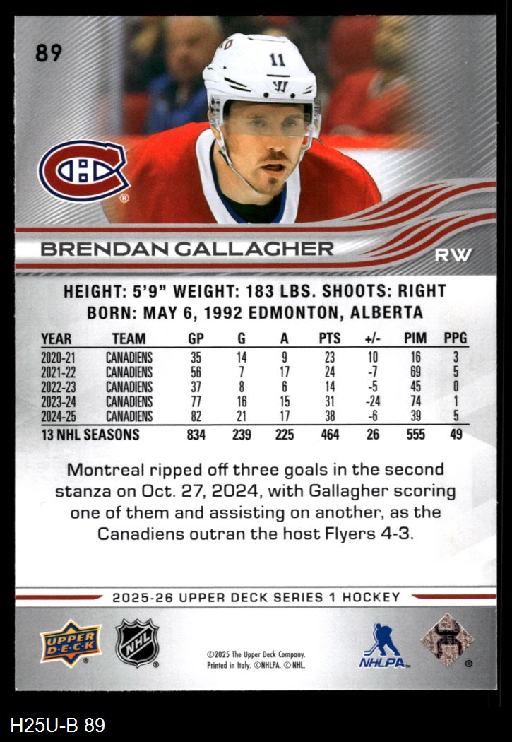 2025 Upper Deck #89 Brendan Gallagher 8 - NM/MT