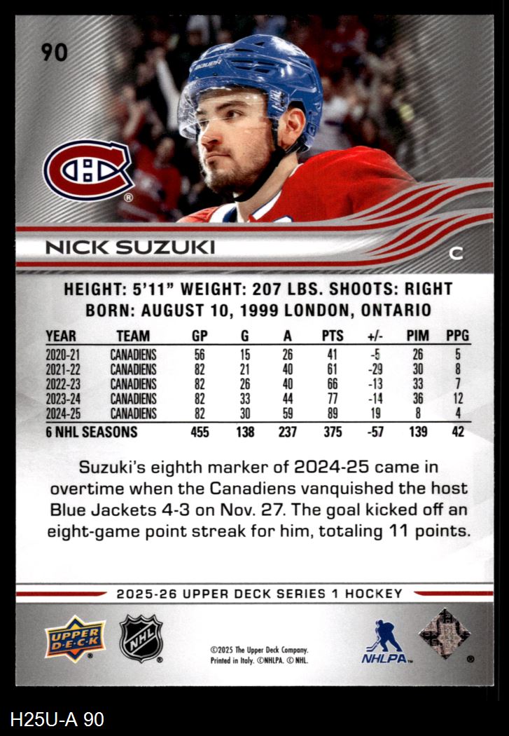 2025 Upper Deck #90 Nick Suzuki 8 - NM/MT