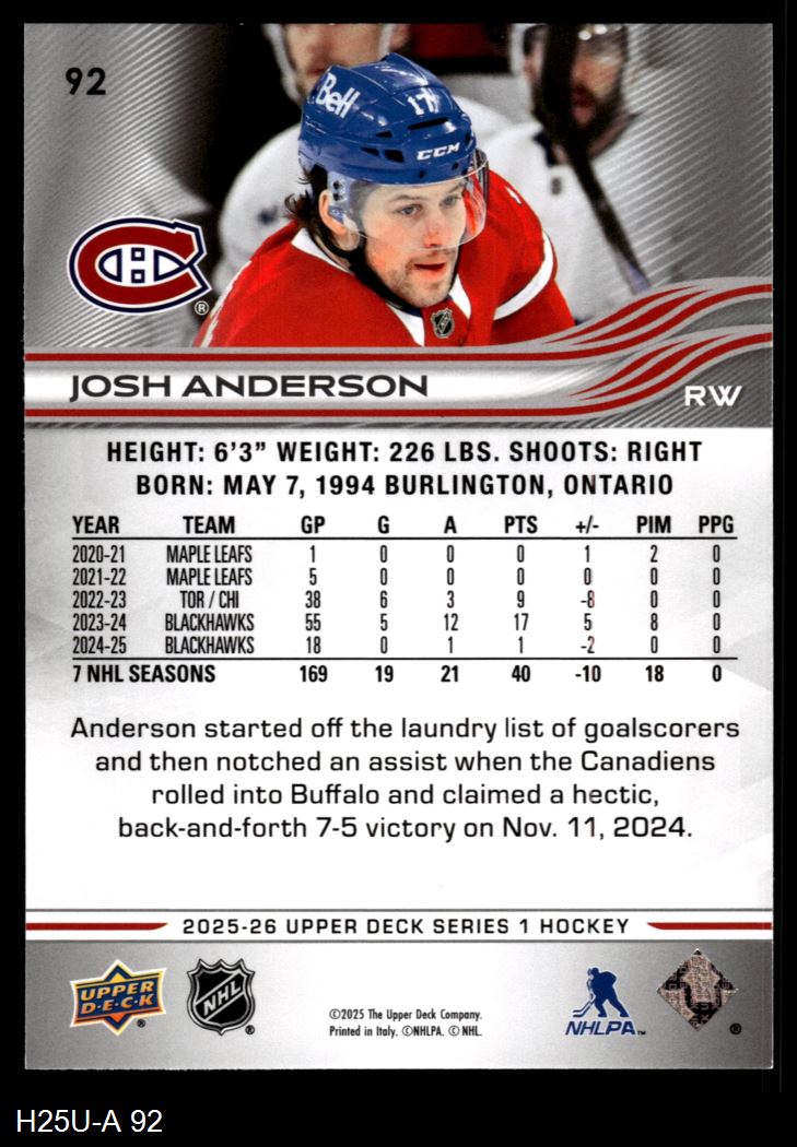 2025 Upper Deck #92 Josh Anderson 8 - NM/MT