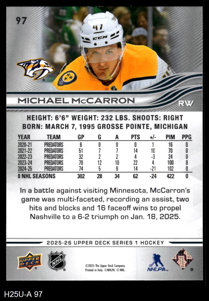 2025 Upper Deck #97 Michael McCaron 8 - NM/MT
