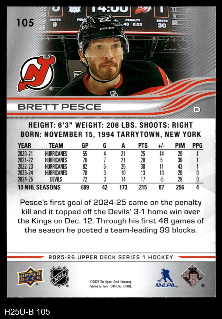 2025 Upper Deck #105 Brett Pesce 8 - NM/MT