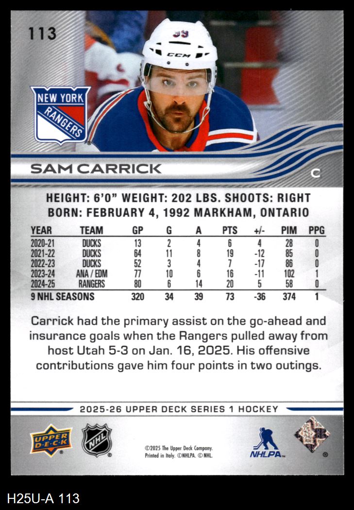 2025 Upper Deck #113 Sam Carrick 8 - NM/MT