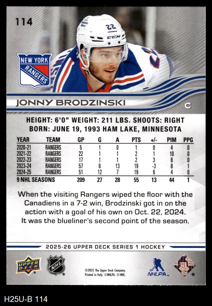 2025 Upper Deck #114 Jonny Brodzinski 8 - NM/MT