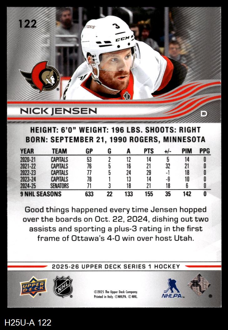 2025 Upper Deck #122 Nick Jensen 8 - NM/MT