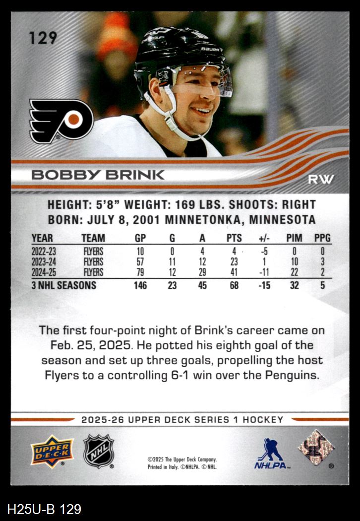 2025 Upper Deck #129 Bobby Brink