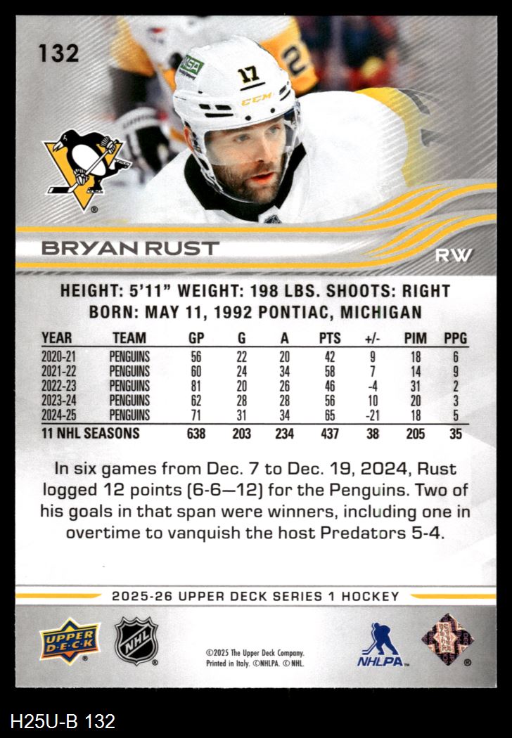 2025 Upper Deck #132 Bryan Rust 8 - NM/MT