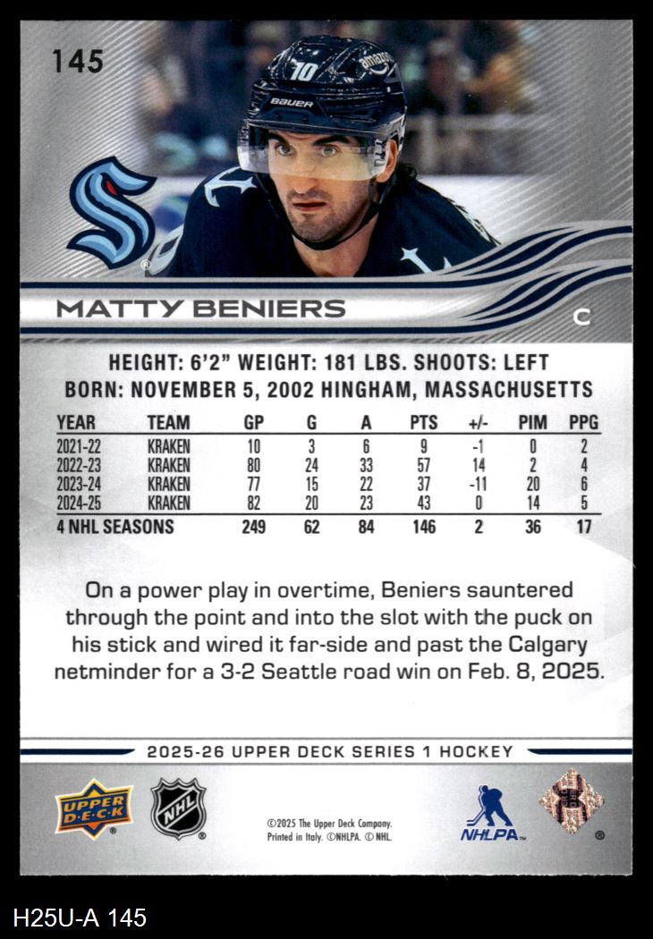 2025 Upper Deck #145 Matty Beniers 8 - NM/MT