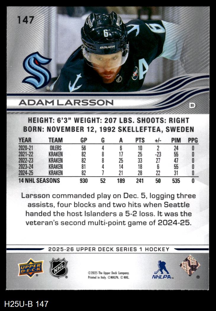 2025 Upper Deck #147 Adam Larsson 8 - NM/MT