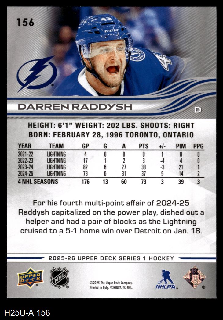 2025 Upper Deck #156 Darren Raddysh 8 - NM/MT