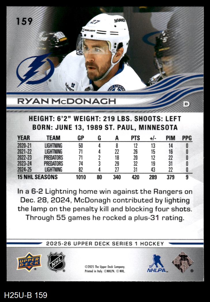 2025 Upper Deck #159 Ryan McDonagh 8 - NM/MT