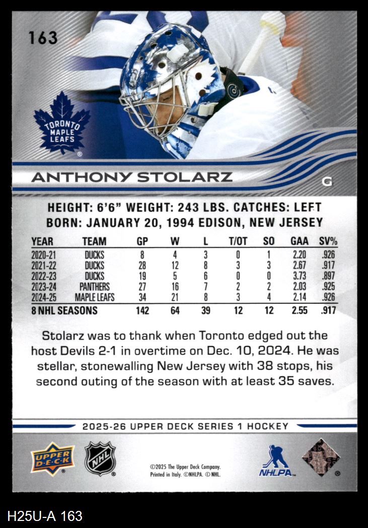 2025 Upper Deck #163 Anthony Stolarz 8 - NM/MT
