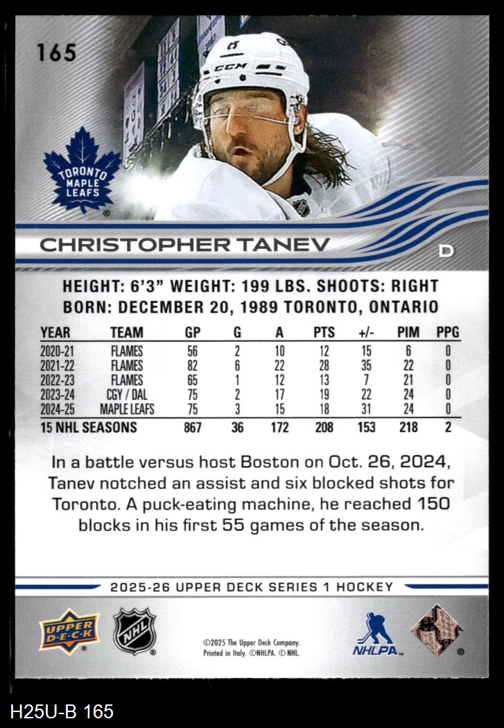 2025 Upper Deck #165 Christopher Tanev 8 - NM/MT