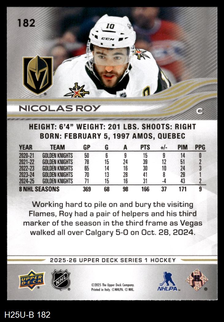 2025 Upper Deck #182 Nicolas Roy 8 - NM/MT