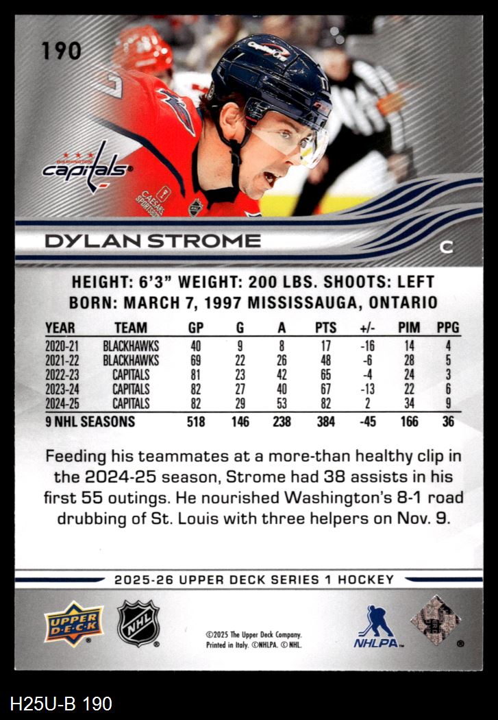 2025 Upper Deck #190 Dylan Strome 8 - NM/MT