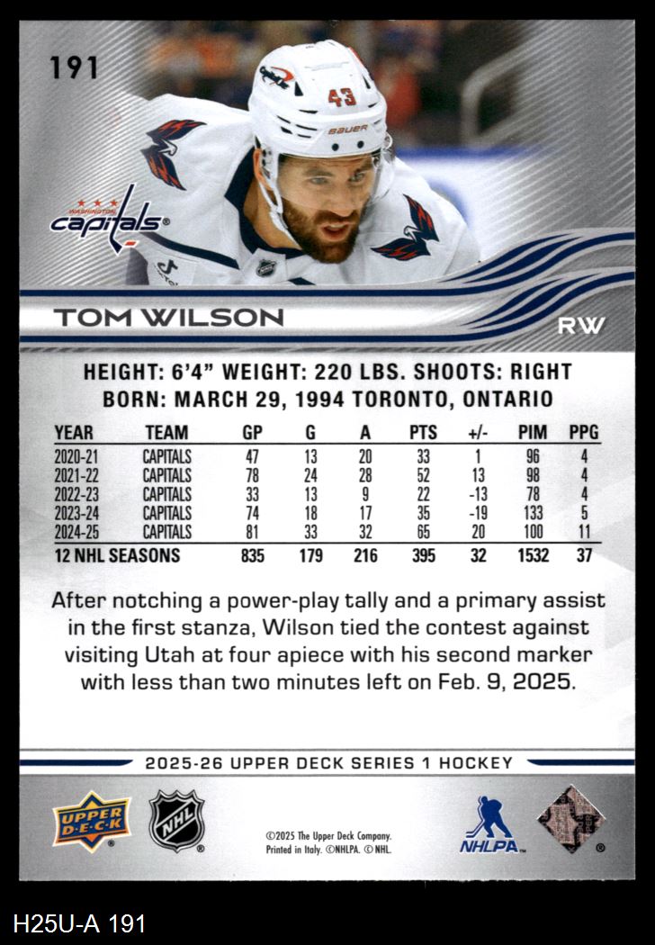 2025 Upper Deck #191 Tom Wilson 8 - NM/MT