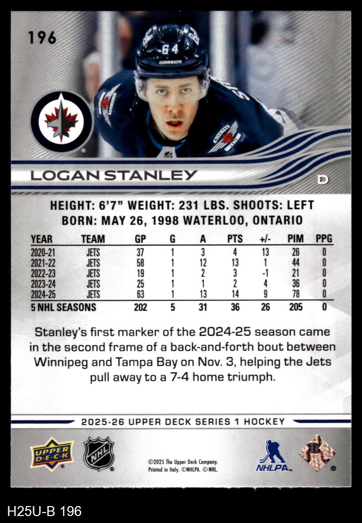2025 Upper Deck #196 Logan Stanley 8 - NM/MT