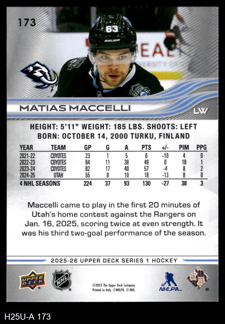 2025 Upper Deck #173 Matias Maccelli 8 - NM/MT