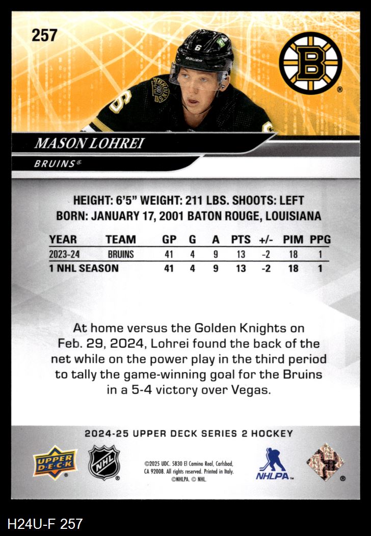 2024 Upper Deck #257 Mason Lohrei 8 - NM/MT