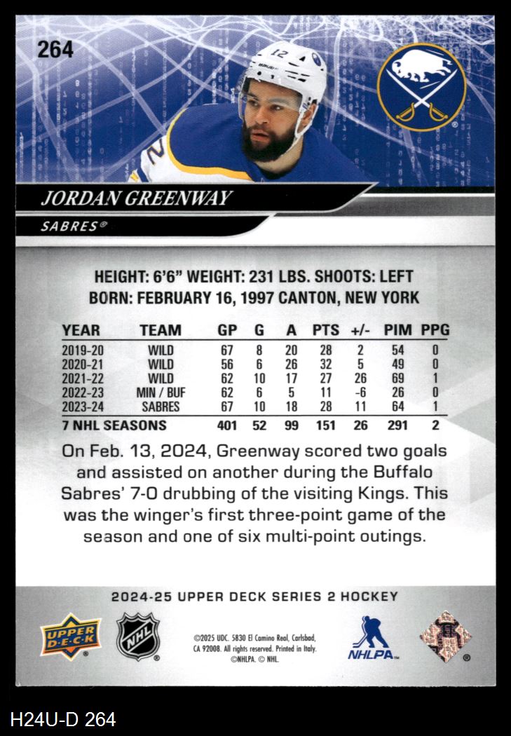 2024 Upper Deck #264 Jordan Greenway 8 - NM/MT