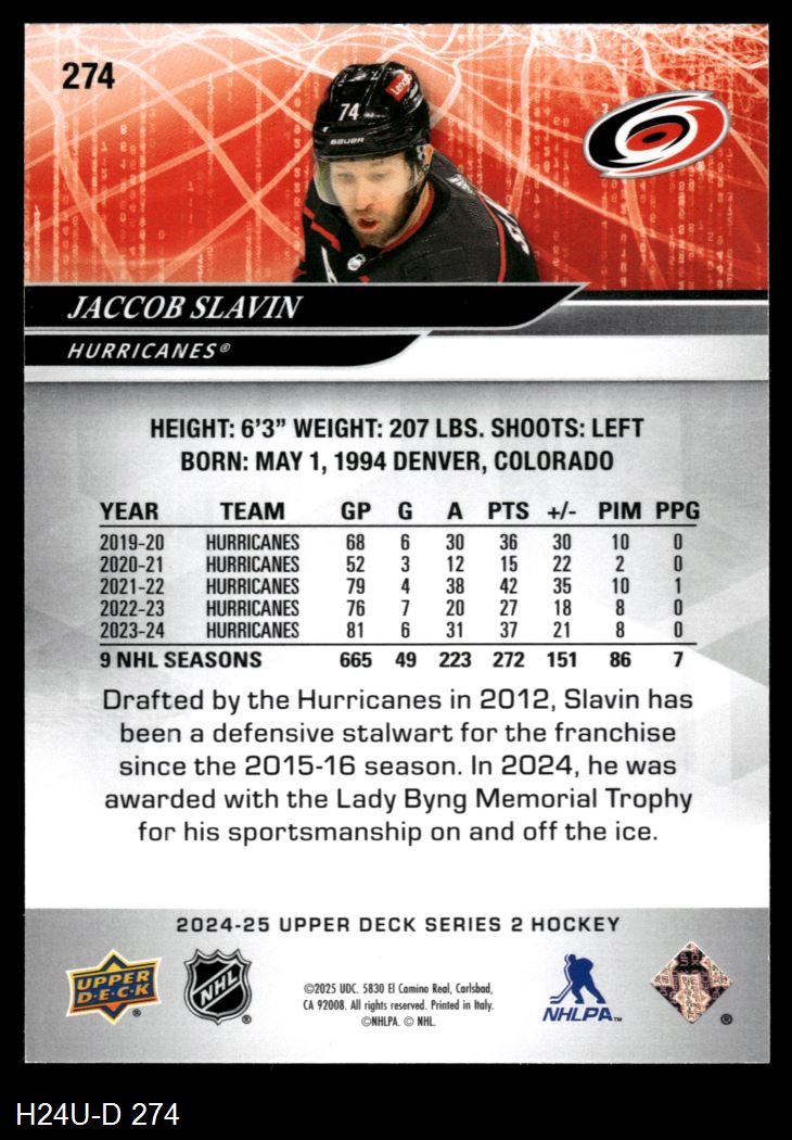2024 Upper Deck #274 Jaccob Slavin 8 - NM/MT