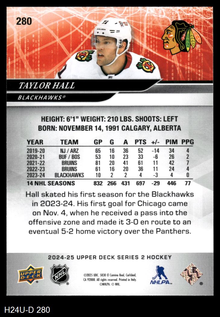 2024 Upper Deck #280 Taylor Hall