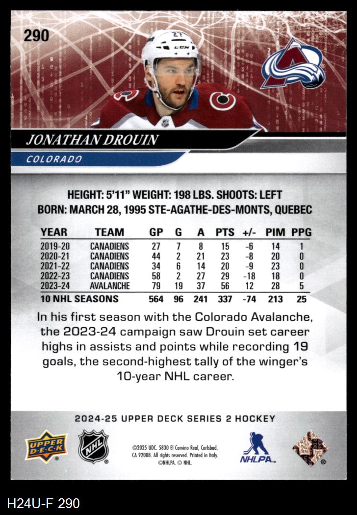 2024-25 Upper Deck Hockey Cards (1,071 available)2024 Upper Deck Avalanche (28 available)