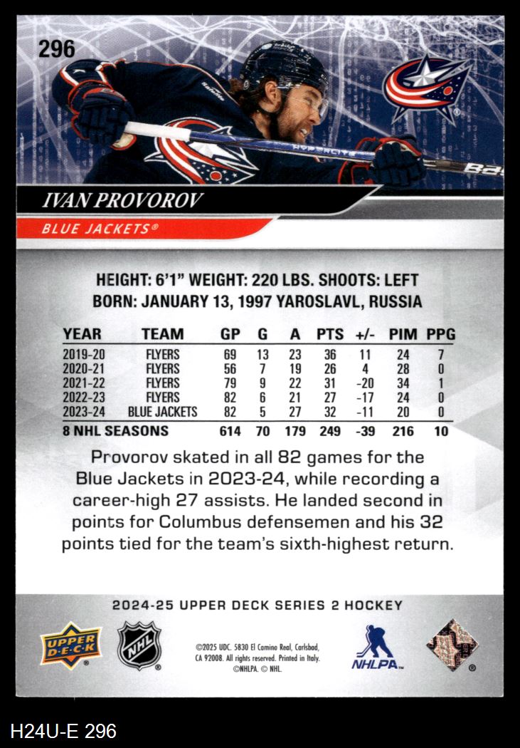 2024 Upper Deck #296 Ivan Provorov 8 - NM/MT
