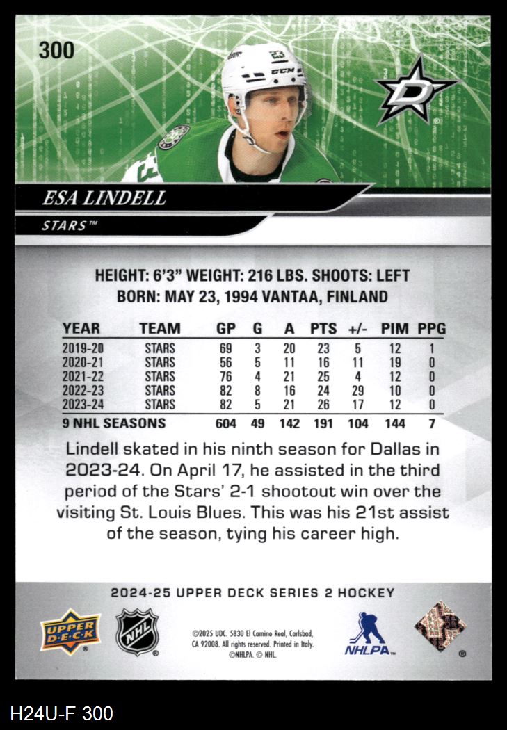 2024 Upper Deck #300 Esa Lindell 8 - NM/MT
