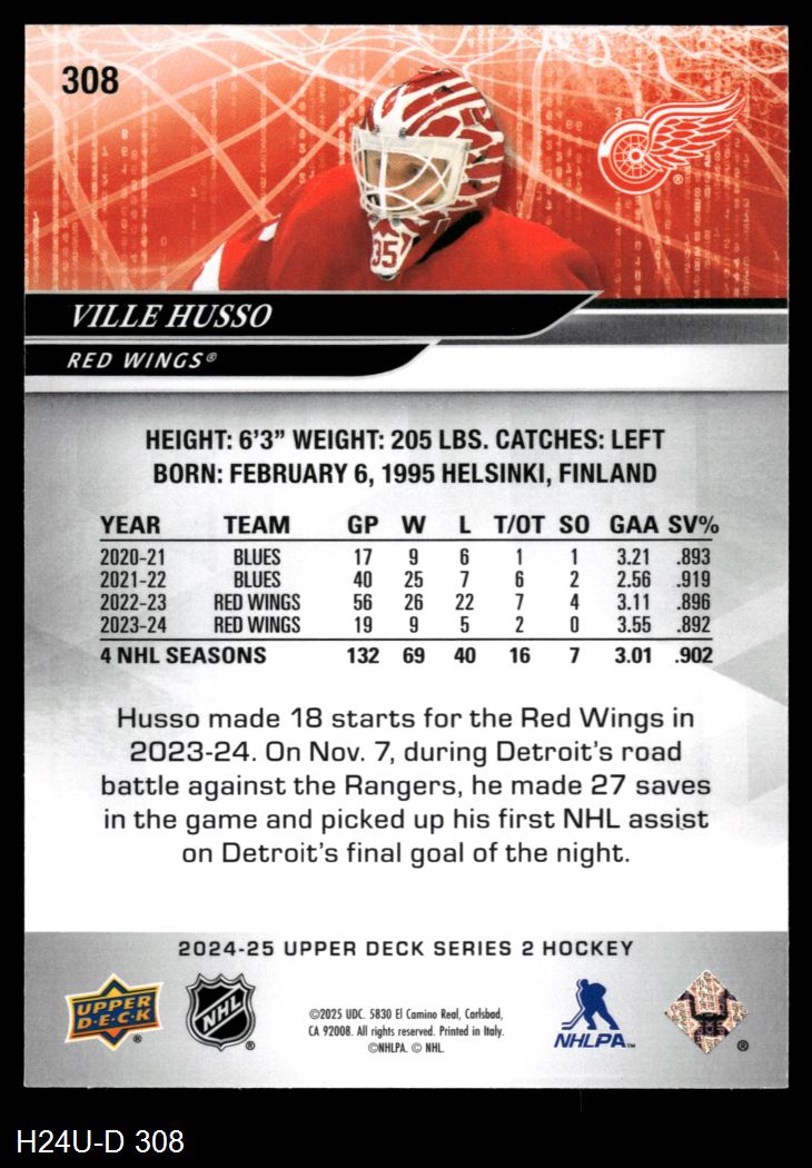 2024 Upper Deck #308 Ville Husso 8 - NM/MT