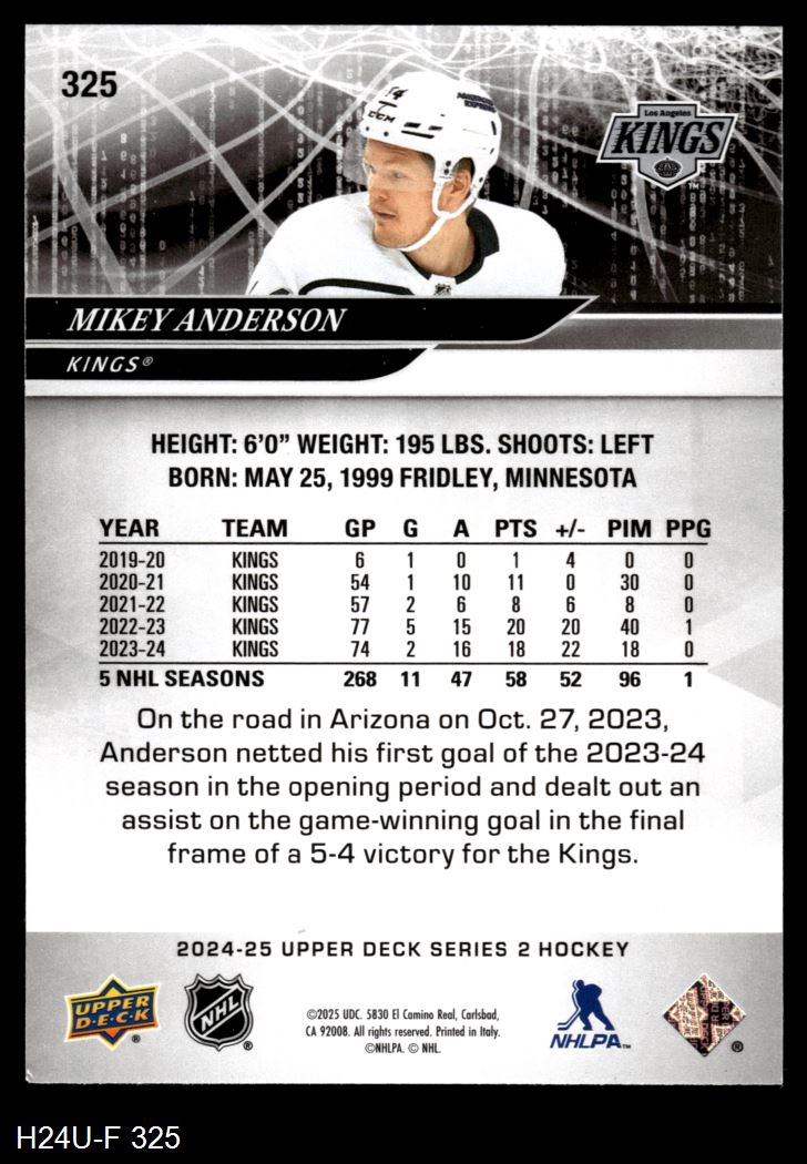 2024 Upper Deck #325 Mikey Anderson 8 - NM/MT