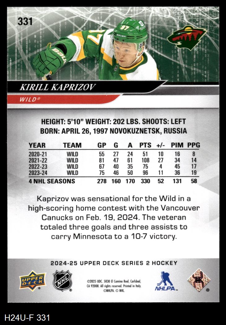 2024 Upper Deck #331 Kirill Kaprizov 8 - NM/MT