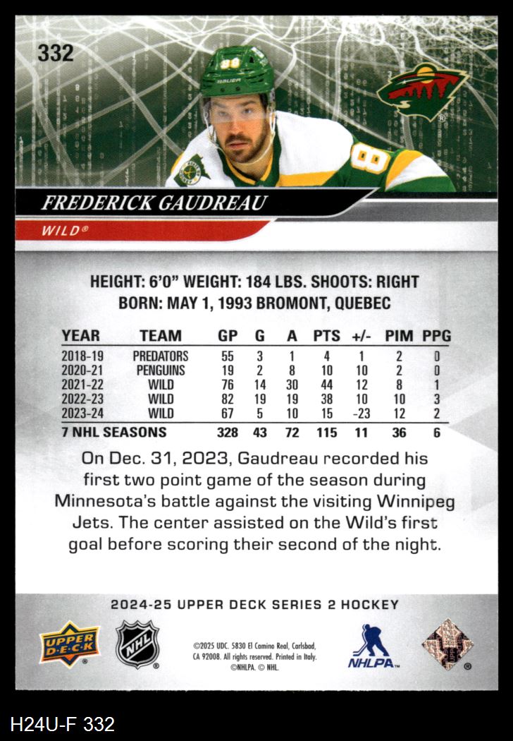 2024 Upper Deck #332 Frederick Gaudreau 8 - NM/MT