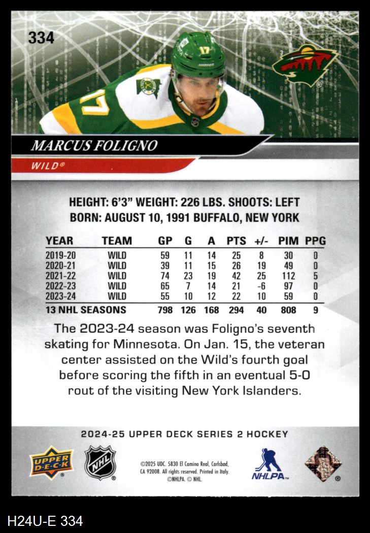 2024 Upper Deck #334 Marcus Foligno 8 - NM/MT