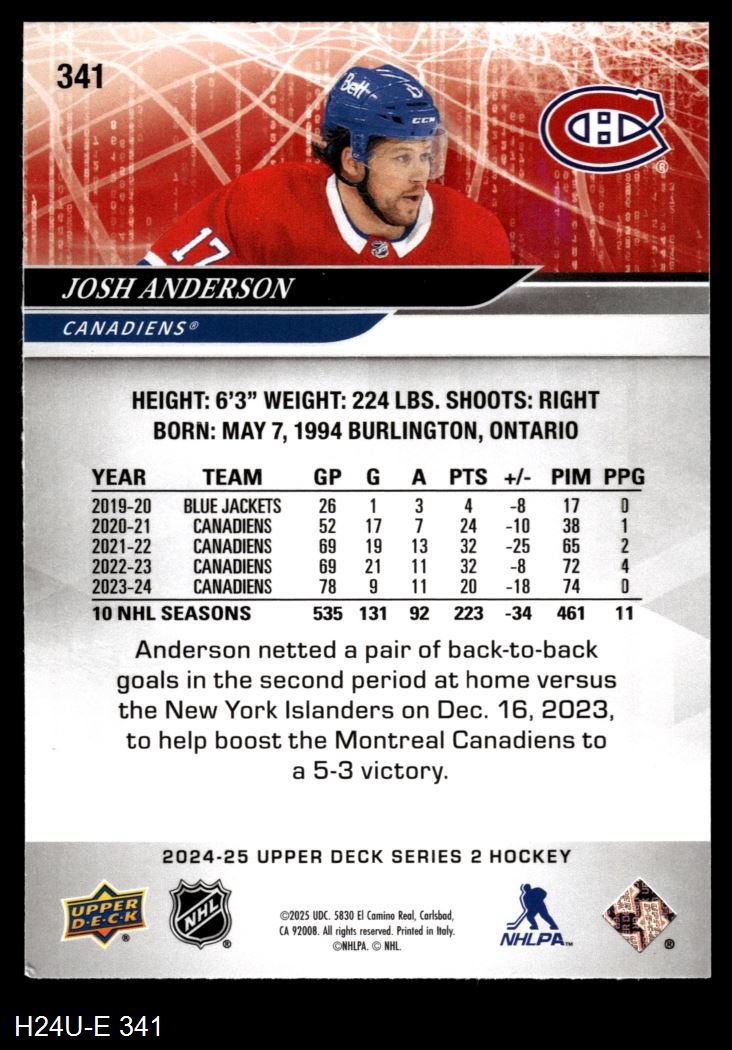 2024 Upper Deck #341 Josh Anderson 8 - NM/MT