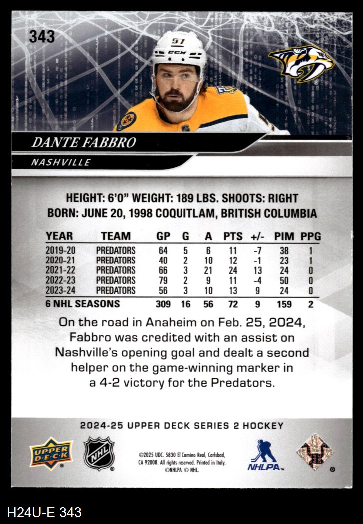 2024 Upper Deck #343 Dante Fabbro 8 - NM/MT